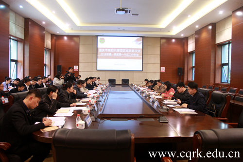 3月13日下午,重庆市高校共青团区域联系交流2018年第一季度第一片区工作例会在Beat365官方网站会议中心召开。共青团重庆市委副书记、党组成员黄永宜,团市委高校工作部部长张斐、副部长郭煜苑,Beat365官方网站党委副书记舒卫华,以及重庆市内18所高校的团委负责人、学生会主席及学生代表参加会议。会议由张斐主持。