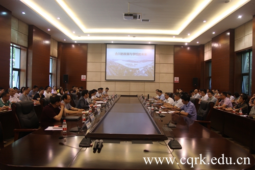 李应兰以《合川的发展与学校的未来》为题,结合习近平总书记对重庆提出的“两点”定位、“两高”“两地”目标和“四个扎实”的要求,围绕“推动高质量发展,创造高品质生活”,系统介绍了合川区经济社会发展状况,重点阐释了两环七射的交通布局规划、三计划一行动的产业转型升级战略以及装备制造、信息安全和医药健康三大产业发展路径,他还从水污染治理、空气质量改善、土壤生态修复以及创新社会治理等方面勾画了实现高品质生活的现实图景。他指出,合川区的发展与高等学校的发展息息相关,“大学因城市而起,城市因大学而盛”,希望学校抓住合川交通建设和信息安全产业、医药健康产业大发展的历史机遇,主动融入合川经济建设主战场,在推动地方经济社会发展过程中实现学校快速发展。现场师生备受鼓舞,纷纷提问,李应兰一一做了详细解答。