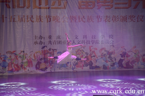 表彰会后,师生共同观看了民族节晚会。文学与新闻传播学院的古典舞《忆青衣》,女子时而抬腕低眉,时而轻舒云手,玉袖生风,典雅矫健。乐声清雅于耳畔,引人入胜;政法学院的傣族舞《彩云之南》,美丽的女子与孔雀共舞,婀娜的舞姿,摇动的身影,像一副画;民族舞蹈协会的回族舞《盖碗情思》,回族姑娘们娉婷玉立、随着生动活泼的民族音乐翩跹起舞。眼花缭乱的饕鬄视觉盛宴赢得了在场观众的阵阵掌声。