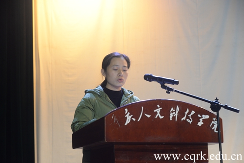 管理学院学生杜馨紫和护理学院教师王娜分别作为先进个人代表和社会实践活动优秀组织奖代表发言。