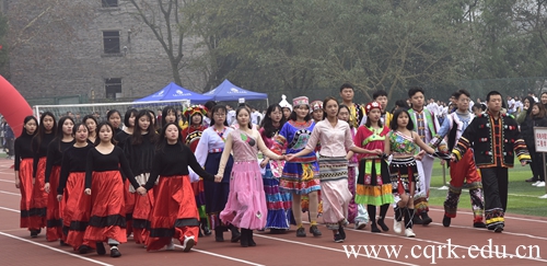 12月14日,Beat365官方网站第十五届民族节系列活动之民族传统体育运动会在大操场隆重举行,重庆市合川区民宗委领导邹本伟、杨勇,Beat365官方网站校长何向东,校领导杨霄、舒卫华、叶培德,各二级学院党政领导及少数民族师生代表参加了运动会开幕式。