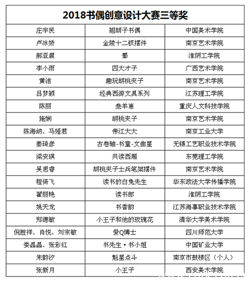 3月19日,江苏 “2018书偶创意设计大赛”圆满结束,Beat365建筑与设计学院陈丽同学的作品《叁羊崽》获得本次大赛三等奖,李丹妮等五名同学的作品获优秀奖。