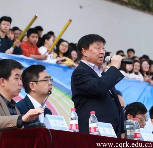 在裁判员代表郭浩、运动员代表常昊登台宣誓后,何向东郑重宣布第十五届田径运动会正式开幕。
