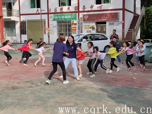 所到之处,同学们积极同孩子们面对面交流,他们给当地留守儿童带去了爱心书包,了解其暑期学习、生活情况,仔细查看暑期作业的完成情况,并就作业中的难点进行了有针对性的辅导。教他们做手工、绘画,播放爱国主义题材的动画片,开展趣味运动会等。