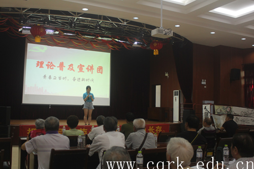 经过志愿者们的精心筹备,宣讲团的成员们根据不同的受众群体,在重庆市革命伤残军人康复医院向广大伤残军人做了主题为“青春正当时 奋进新时代”的宣讲报告,志愿者们以通俗易懂的语言向革命伤残军人们讲解了习近平总书记在党的十九大报告中的重要指示,并与他们开展问答互动环节,现场大家踊跃发言,积极参与;在区内各街道,志愿者们通过发放宣传资料,摆点答疑解惑向当地居民进一步阐述了十九大报告中关于加强农村发展、精准扶贫工作的相关内容,效果显著,达到了预期的宣讲效果。