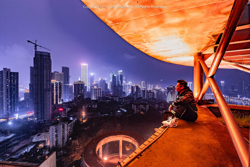 由于经常需要大量的重庆城市风光照片,他就不定期进行重庆城区的踩点取景工作,这也使他成为了一名爬楼党。手机记录下的一天步行2万步、爬个100层楼都是家常便饭,但每当能照出一幅幅动人心魄的城市风光照,此前走过再多的路都觉得非常值得,他更是在一次由中国电信主办的“光影照重庆 岁月谱新篇”摄影大赛中,荣获一等奖。