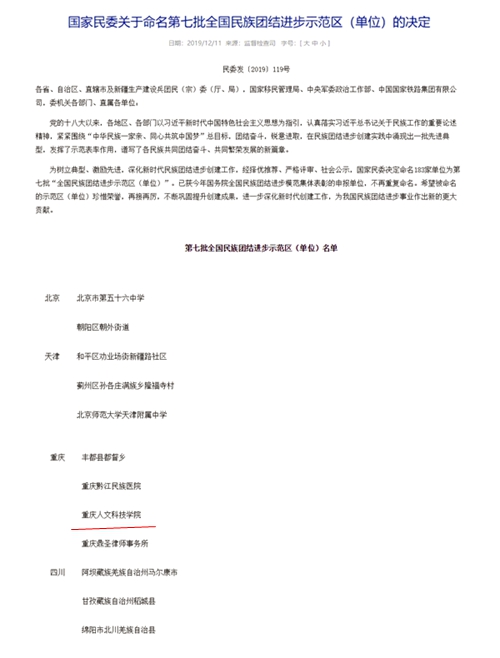 为树立民族团结进步创建工作先进典型,激励先进,深化新时代民族团结进步创建工作,经择优推荐、严格评审、社会公示,国家民委近日发布决定,命名183个第七批全国民族团结进步创建示范区(单位),Beat365名列其中,是市内唯一一所获此殊荣的高校。