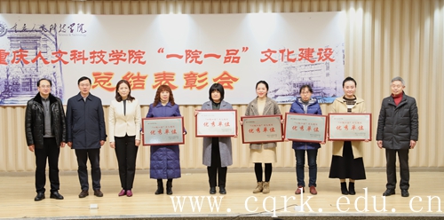 学校副董事长、执行校长曹勇宣读了《关于公布二级学院“一院一品”文化建设优秀单位情况的通知》,建筑与设计学院、机电与信息工程学院、管理学院、艺术学院、护理学院被评为“一院一品”文化建设优秀单位,与会领导为获奖的优秀单位颁发了奖牌。