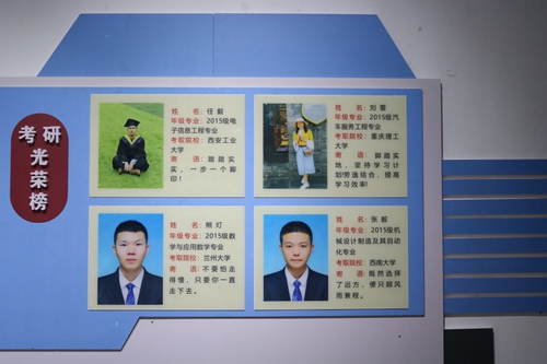 (二)两廊:即两个文化长廊,以毕业墙、学科竞赛为亮点,同时展示学院党团活动、优秀校友、考研光荣榜等项目。