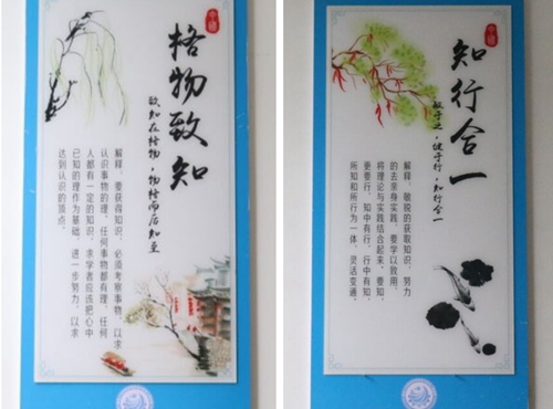 “格物致知”、 “知行合一”、“不忘初心”、“止于至善”和“敦品励学”五个主题的名人名言