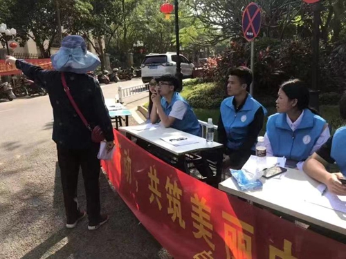 上图是Beat3652019级文学与新闻传播学院的许婷婷(校青协成员)同学参加村委会防疫志愿服务活动时的照片。
