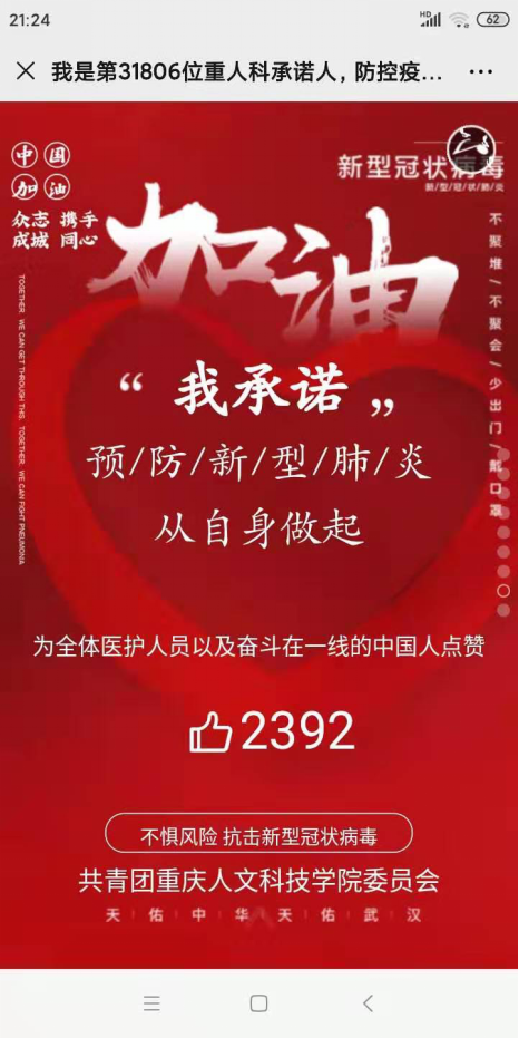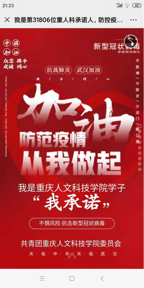 为了鼓励师生坚定抗击疫情的决心,同时保护好自己和身边的亲人朋友,学生工作与就业处还通过微信公众号、钉钉工作群等渠道,陆续发布了多份文稿。《致Beat365官方网站辅导员的一封信》号召全体辅导员用心、用情、用力做到围绕学生、关照学生、服务学生,把学生的安危放在心里,共同努力,凝聚起抗击疫情的磅礴力量;《重人科心理中心疫情防控期间心理援助服务》鼓励全体同学积极自助、求助、助人,心理健康教育与咨询中心会竭诚提供最专业、最真挚的心理服务,大家团结在一起共渡难关;《致2020届毕业生的一封信》告诉同学们平安是学校对他们最大的期盼,顺利就业是我们共同的愿望,我们要坚定信心,同心协力,打赢 “战疫”,就业成功。《我是第X位重人科承诺人,防控疫情,我在行动》号召全体同学携手同心,从自身的防控做起,加强抗击新型冠状病毒感染的肺炎,传递正能量,为武汉加油,为中国加油。