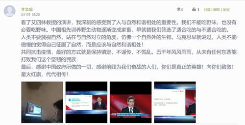 直播结束后,教师们在组织学生展开讨论。同学们表示,在举国上下万众一心、众志成城做好新冠肺炎疫情防控工作的特殊时刻,疫情防控“思政大课”就像是一场对大学生思想政治教育的“及时雨”,对学生来说是一场思想的大洗礼,更是一次很宝贵的提升;同学们谈到,疫情胜利来之不易,平安健康就是幸福,社会主义制度优越,党的领导、人民军队好,中国综合实力及理论道路的正确性得到展示,我们对疫情战胜充满必胜信心,坚信在中国共产党的正确领导下,中国人民万众一心,众志成城,一定可以战胜病魔。作为青年大学生,我们一定努力学好本领,不忘初心,不负韶华,为未来国家建设打下坚实的知识基础。