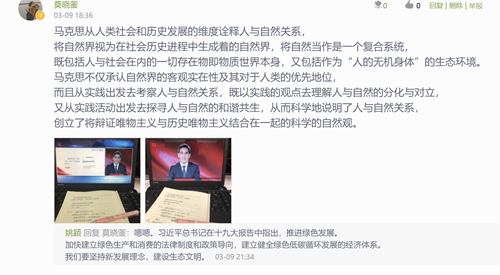 马克思主义学院思政课教师在直播或回放学习以及后期教学内容中结合本学期开设的“马克思主义基本原理概论”、“毛泽东思想和中国特色社会主义理论体系概论”、“中国近现代史纲要”、“形势与政内容四门课程,解读党中央关于疫情防控的决策部署,分析中国抗疫彰显的中国共产党领导和中国特色社会主义制度的显著优势。教师们在直播结束后与学生在超星学习通平台上进行在线讨论,学生们结合后期所开设课程的教学内容写心得体会,并作为期中作业计入过程性考核,确保学生学习更深入。其中全校大一、大二学生结合本学期开设的“马克思主义基本原理概论”、“毛泽东思想和中国特色社会主义理论体系概论”、“中国近现代史纲要”3门必修课教学内容;大三、大四学生结合本学期开设的“形势与政策”中的相关专题。