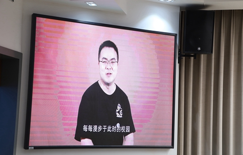 教师代表、艺术学院教师李帅通过录制视频的方式,对全体毕业生顺利完成学业表达了诚挚祝贺,对毕业生即将离开校园,开始新的征程表达了美好祝愿。与此同时,他独具匠心的结合学校校训“厚德笃行 求真创造”重新阐释了“出发”的含义,为全体毕业生面对社会新挑战树立了人生导向标。