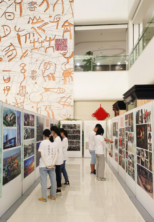 图为组员们参观“中国城市经济与文化脱贫之路”相关展览