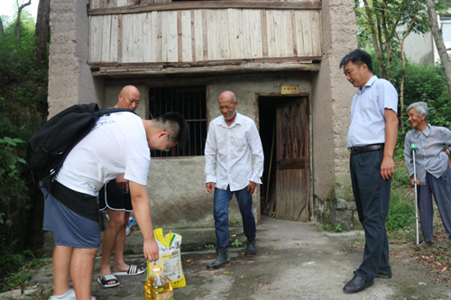 图为组员和村两委成员一同走访慰问贫困户。