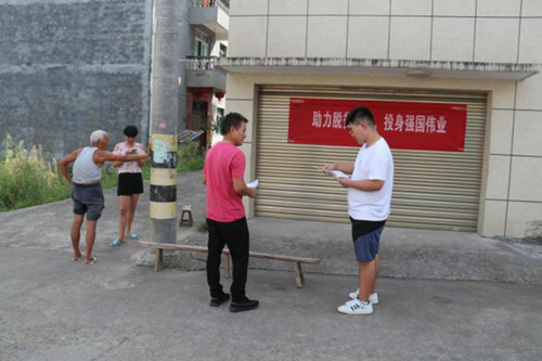 8月18日,实践团队长来到位于绍兴市新昌县的荘前村,联系村党支部书记陈尧初,同时组织“云会议”,与其一同走访慰问贫苦户,并开展相关的走访调研以及宣讲活动;团员在各自家中用腾讯会议参与“云实践”,同时在网上发放扶贫攻坚情况调查问卷,并对调查到的数据进行整理分析,汇总调研成果。
