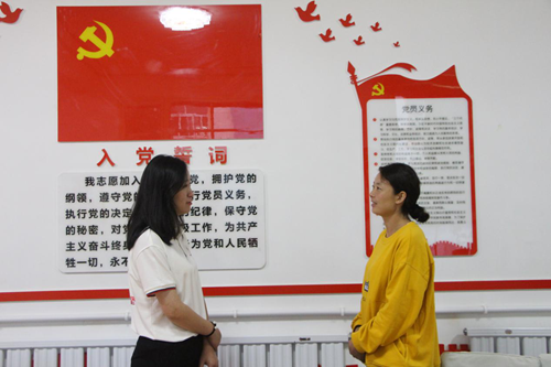 后扬村党支部书记裴学红(右一)正在接受团队成员采访