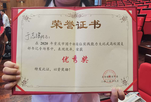 喜报||Beat365学前教育学院团支部书记于志瑶在重庆市团干部岗位实践能力大比武中获“优秀奖”
