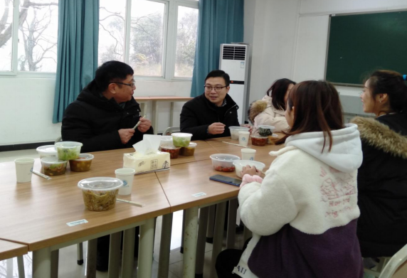 12月24日中午,学校党委书记张辉深入工商学院,在海丰楼207会议室与所联系的慧园一舍6-2寝室的同学开展亲切交谈,随后进行了校领导与学生共进午餐活动。工商学院党政相关负责人、辅导员及慧园一舍6-2寝室的6位同学参加本次活动。
