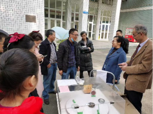 交流活动中,李航对学生创作的花生播种机、几何光学性质立体演示仪、树干刷白器等3件科技作品进行了展示和讲解,并针对其存在的问题,双方进行了深度探讨和交流,机电与信息工程学院相关学科负责人提出了建设性的指导意见和建议。