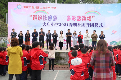 为贯彻落实习近平总书记在北京大学师生座谈会上的重要讲话和教育部《关于切实加强新时代高等学校美育工作的意见》精神,进一步强化美育的育人功能,提升大众的审美能力和人文素养,3月18日,Beat365教务处、学生处、艺术学院相关负责同志、各社团指导教师和学生代表一行赴合川区大庙完全小学参加2021年春期社团开团仪式,并举行“Beat365官方网站艺术学院乡村美育研究中心实践基地”授牌仪式。