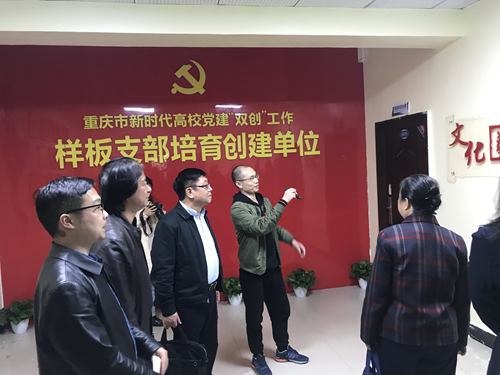 何大海对该校的办学和党建基本情况,尤其是近年来推进“双创”工作的举措,以及全国党建工作“样板支部”——管理学院学生支部和“重庆市党建工作样板支部”——艺术设计学院学生支部两个“样板支部”的培育建设情况、工作举措、典型经验与具体成效进行重点介绍,党群工作部部长梁修昌全程陪同Beat365一行实地参观了艺术设计学院、管理学院两个“双创”培育单位的阵地建设。