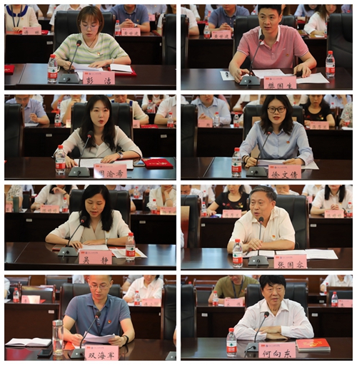 会议进行了座谈交流发言。学生党员代表、外国语学院彭洁,教师党员代表、文学与新闻传播学院樊国生,职工党员代表、学生工作与就业处周渝希,党支部代表、工商学院学生第三党支部书记徐文倩,党总支代表、管理学院党总支书记吴静,学院院长代表、马克思主义学院院长张国容,机关代表、校长助理兼教务处长双海军,老党员代表、学校高级顾问、原校长何向东等八位同志分别在会上作了交流发言。他们围绕“回顾百年历程,坚定理想信念,践行初心使命”主题,表达了对中国共产党成立100周年的祝福,分享了工作经验和坚定理想,坚守初心,践行使命,做好工作的思路和责任担当。