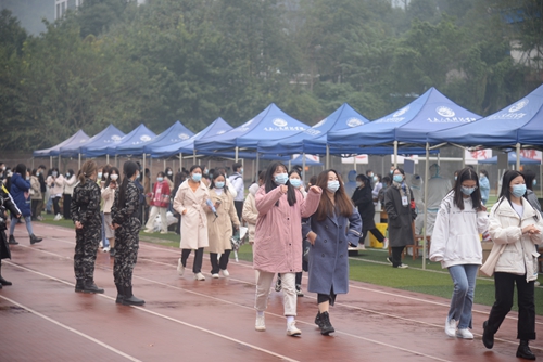 为深入落实重庆市关于新冠肺炎疫情防控工作要求,全面做好学校新冠肺炎疫情应急处置工作,确保广大师生生命安全和身体健康。根据学校新冠肺炎疫情防控领导小组工作部署,11月11日下午15时,学校疫情防控工作领导小组办公室协调组织相关部门开展了疫情防控应急演练,演练分为校大门的疫情应急处置和大规模核酸采样检测两个环节。校长张跃光、党委书记张辉、副校长程荣尧、党委副书记舒卫华,相关职能部门负责人、各二级学院党总支书记、以及师生和教职工代表1200余人全程参与了本次演练。