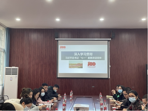 为深入学习贯彻习近平总书记在庆祝中国共产党成立100周年大会上的重要讲话精神,推动党史学习教育深入开展,11月19日中午,党委书记张辉在海丰楼106党员活动室为工商学院全体教师党员讲授学习贯彻习近平总书记“七一”重要讲话精神专题党课。