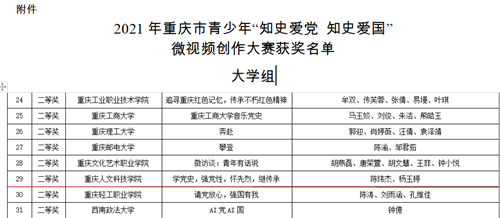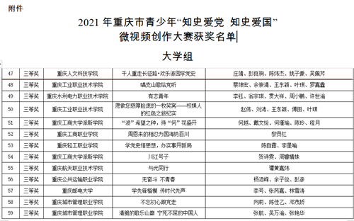 【喜报】Beat365官方网站选送作品在2021年重庆市青少年 “知史爱党 知史爱国”微视频创作大赛中喜获佳绩