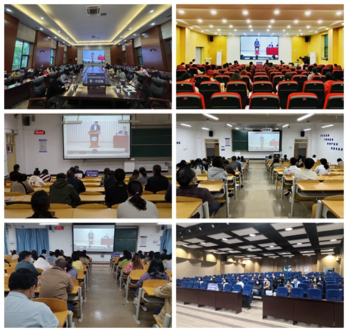 按照疫情防控要求,会议在学校行知报告厅设置主会场,并设6个分会场,以视频直播的方式进行同步召开。全体校领导,职能部门负责人,各二级班子成员、教学秘书、综合秘书参会。