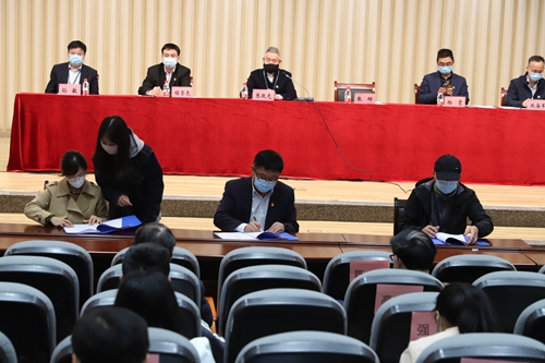会上,党委宣传部、党委保卫部、管理学院、计算机工程学院主要负责人作为代表与党委签订了2022年《党风廉政建设目标责任书》。