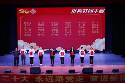 团委书记韩亮在会上宣读了《关于表彰2021-2022学年共青团系统“争优创先”先进集体和先进个人的决定》,与会领导为获奖先进集体和先进个人颁奖。