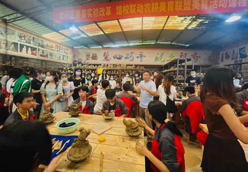 在该校“泥塑工作坊”,同学们现场观摩了泥塑课程教学展示,与该校学子一起动手制作泥塑作品,体验特色泥塑课乐趣,跟授课教师就泥塑特色课程的发展历程和教学美育、人才培养等理念进行了深入沟通交流。