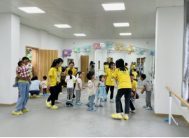 在幼儿舞蹈馆的小朋友化身为花仙子,通过音乐游戏、亲子游戏、手指游戏、幼儿舞蹈等形式,在哥哥姐姐的指引下,随着音乐伸展身姿,释放着快乐天性。