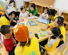 在以亲子为主题的儿童绘本馆,小朋友们化身为小兔子,聆听小老师们讲述《猜猜我有多爱你》等绘本故事,学会用多种方式去感受、表达和回应父母的爱。最后,大家还把故事中的人物角色制作或绘画出来,表示对父母的感激。