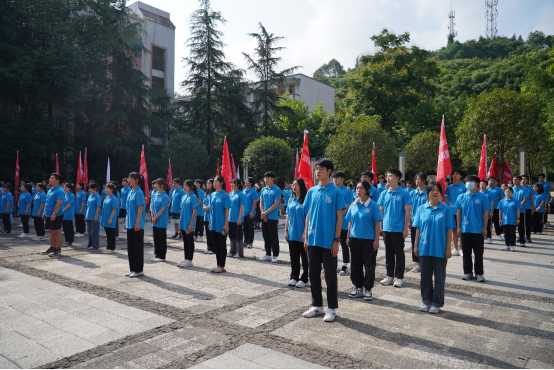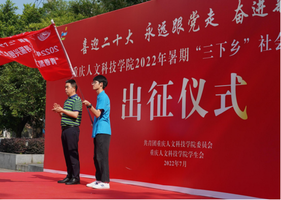 广场上,雄壮高亢的《义勇军进行曲》响起,全体肃立齐声高唱国歌,这也标志了Beat365官方网站2022年暑期“三下乡”社会实践活动出征仪式正式拉开帷幕。