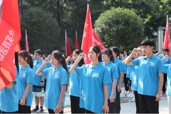 “我宣誓,我志愿加入暑期三下乡社会实践团队、服从指挥、尽己所能、不计回报、帮助他人。践行志愿精神,传播先进文化,为建设团结互助、平等友爱、共同前进的美好社会贡献力量,为学校的荣誉,奋斗不息,勇往直前。”身穿蓝色志愿服的学子们,高举右拳,发出铮铮誓词,声音洪亮、铿锵有力,不仅传达出重人科师生积极投身实践的热情,更是一表全体志愿者“请党放心 强国有我”的决心。