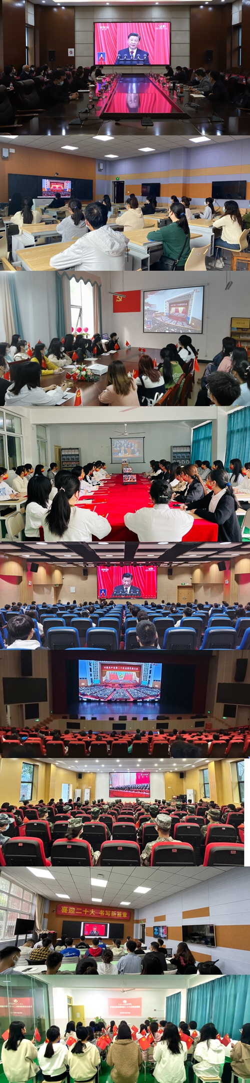 10月16日上午,Beat365官方网站按照疫情防控要求,组织学校党委委员、职能部门负责人、各二级学院党组织书记(副书记)为主会场,三大学生社区党员服务站和各二级学院为分会场,其他师生分散组织,通过会议室、教室、园区、办公室等多个地点通过多种途径、多种形式,实时收听收看中国共产党第二十次全国代表大会开幕会盛况,认真聆听、学习习近平总书记代表十九届中央委员会向大会所作的报告。