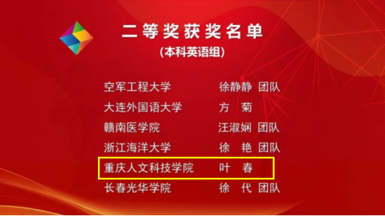 据了解,该交流活动前身是“中国外语微课大赛”,于2014年由高等教育出版社和中国高等教育学会率先发起,旨在加快外语教育信息化发展,促进疫情常态化线上线下教学的深度融合。今年共有来自30个省、市526所院校1210件作品参与,分为本科英语组和高职高专英语组两个组别,Beat365外国语学院教师叶春在初赛中一举夺魁,获得重庆赛区比赛特等奖,作为重庆赛区唯一参加全国总决赛的代表并作线上交流。