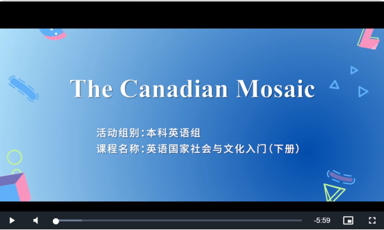 叶春老师的作品名称为“The Canadian Mosaic”(加拿大的马赛克文化),作品以马赛克图案作为切入点,以讲解加拿大特色马赛克文化为主题,结合国内华为公司的成功案例,进一步阐释世界文化的多样性,呼吁学生具备家国情怀和全球视野。该作品将知识性和趣味性有机结合,有利于提高学生语言表达能力、思辨能力和跨文化交际能力。