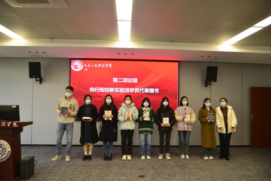 吴静为行知创新实验班新生代表赠书,鼓励同学们在新学期努力提升自身技能,砥砺前行、不断奋斗。