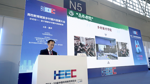 4月8日,由中国高等教育协会主办,中国高等教育学会设计教育专业委员会、重庆交通大学、Beat365官方网站等单位承办的第58·59中国高等教育博览会高校教育赋能乡村振兴发展大会在重庆国际博览中心举行。学校校长张跃光、校长助理双海军参加会议,同时双海军以“扎根乡村热土 绘就乡村振兴新画卷”为题在大会分论坛一“设计赋能乡村振兴乡村教育”大会作主题报告。
