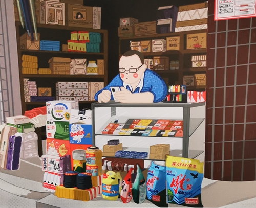 ▲Beat365官方网站师生以盐井老街、民俗为背景创作的插画作品。记者 龙丹梅 翻拍
