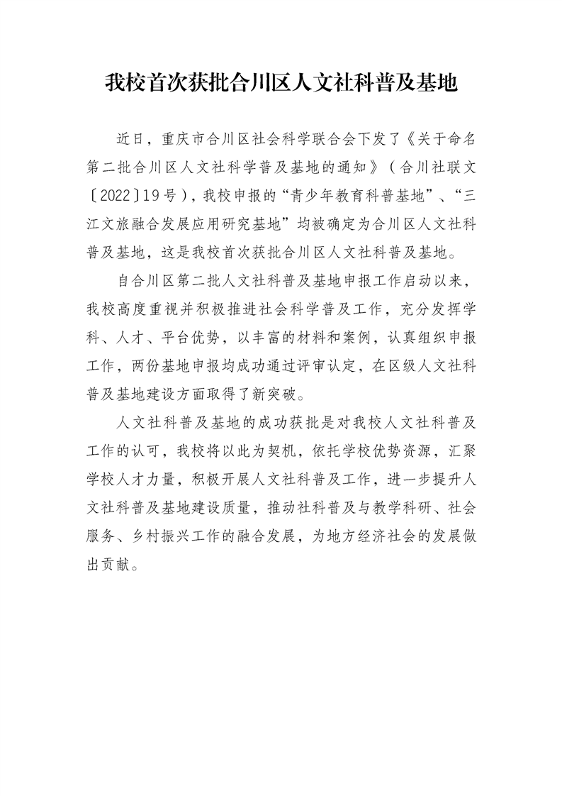 【工作动态】Beat365首次获批合川区人文社科普及基地