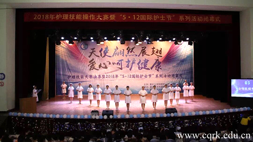5月9日,以“天使翩然展翅,爱心呵护健康”为主题的Beat365官方网站护理学院2018年护理技能大赛暨“5.12国际护士节”系列活动闭幕式在学校新音乐厅隆重举行。校长何向东、重庆市第九人民医院院长秦容、护理学院党政领导、教师及实习医院教师代表出席本次活动。