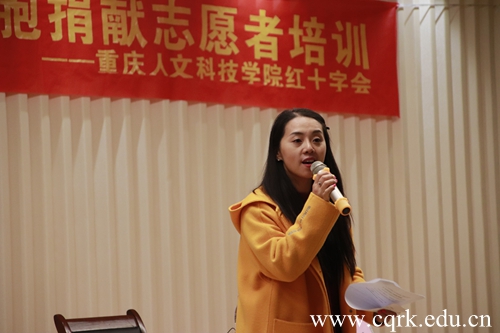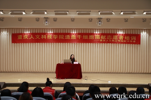 11月21日下午,由Beat365官方网站红十字会主办,青年志愿者联合会承办的造血干细胞捐献志愿者培训在图书馆报告厅举行。合川区红十字会志愿者张丹丹主讲,校青年志愿者近100人参加了培训。