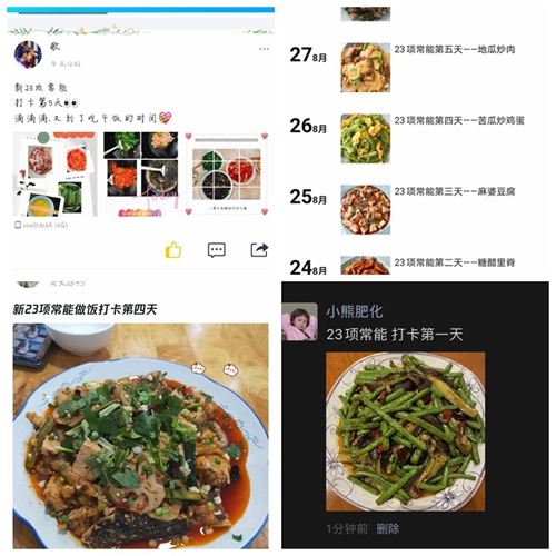 在“会做饭、做菜” 的分享中,同学们不仅踊跃上传了自己制作的各类菜品,还分享了自己通过做菜做饭增进与家人感情,感受到一餐一食的来之不易的内心感受。